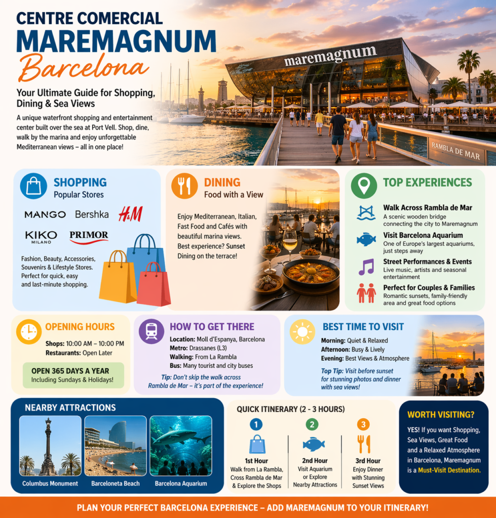 If you are searching for a place where you can unwind, appreciate the sea, and shop without pressure, Maremagnum is an essential stop on your Barcelona journey.