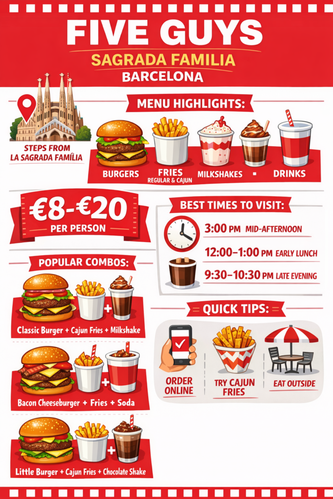 Five Guys Sagrada Familia Barcelona — Complete Guide, Menu, Prices, and Insider Tips
