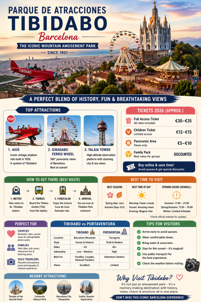 This guide provides a comprehensive semantic breakdown of Parque de Atracciones Tibidabo, including transport logistics, pricing structures, ride taxonomy, user experience modeling, travel optimization strategies, comparative analysis, and decision-making frameworks for visitors in 2026.