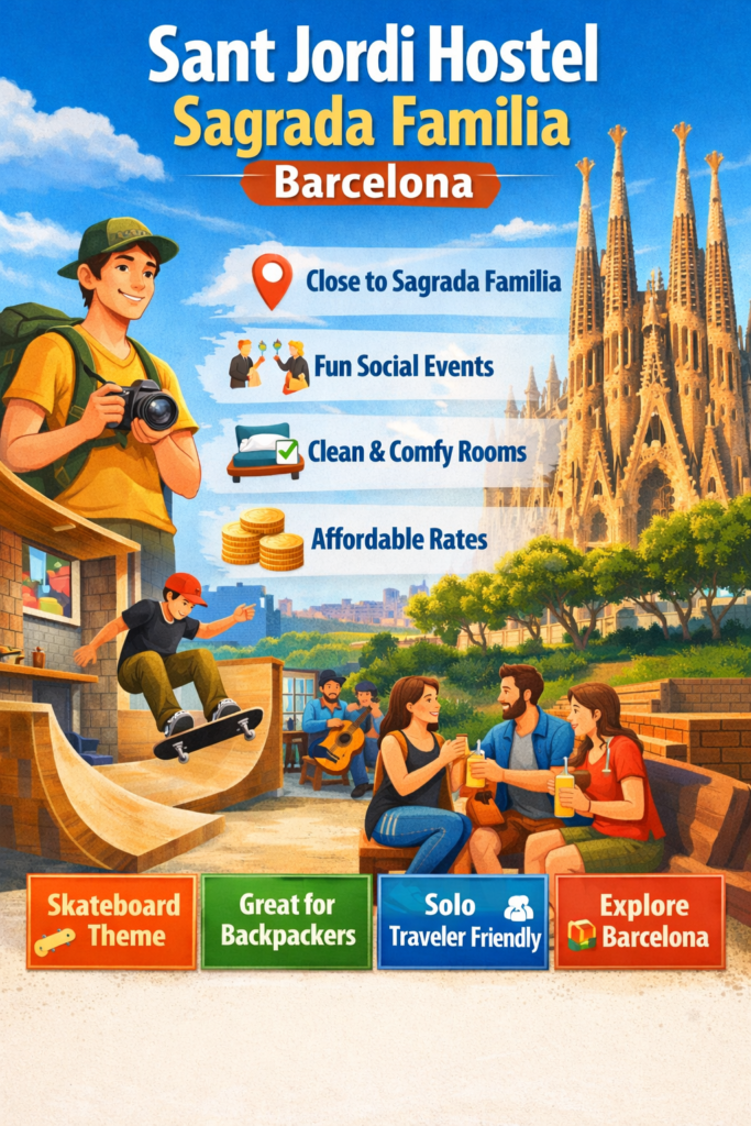 Sant Jordi Hostel Sagrada Familia is a distinctive accommodation choice in Barcelona, acclaimed for its youthful, skateboard-centric design and vibrant social zones. It functions less like a mere lodging facility and more like a hub for meeting like-minded travelers. The property exudes a playful, energetic vibe, with walls adorned in artistic murals, indoor skate ramps, and multiple communal spaces encouraging interaction.